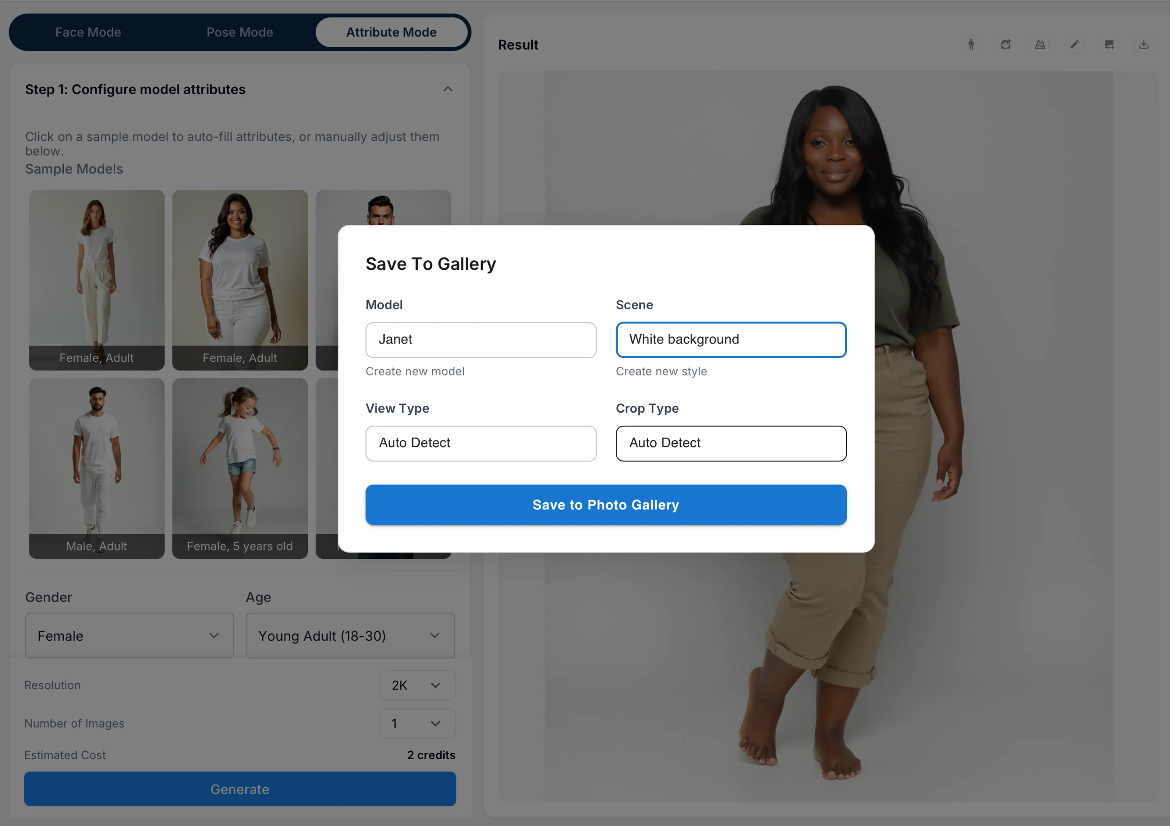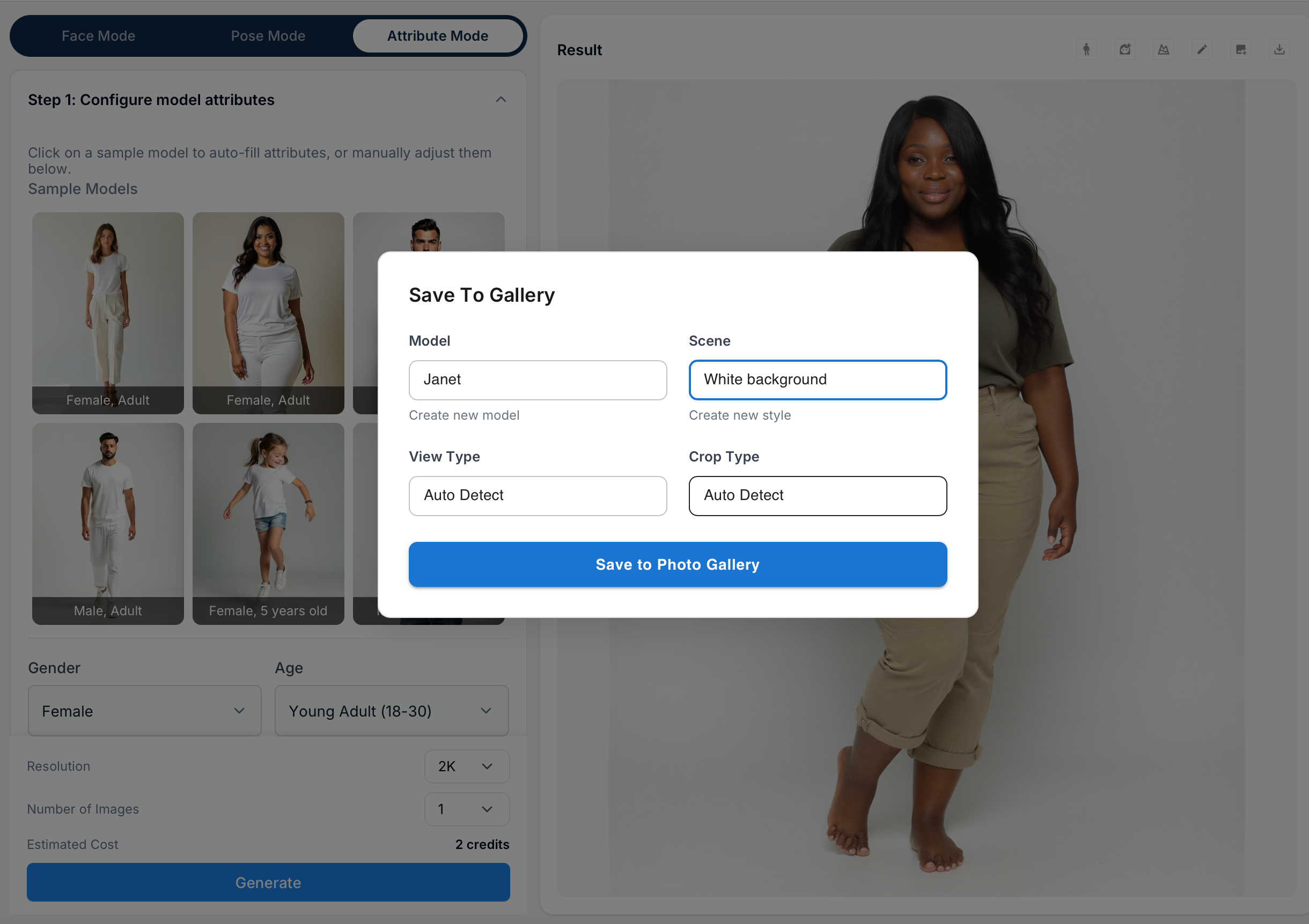 Once you are satisfied with the image, you can save it to the model gallery or download the image.